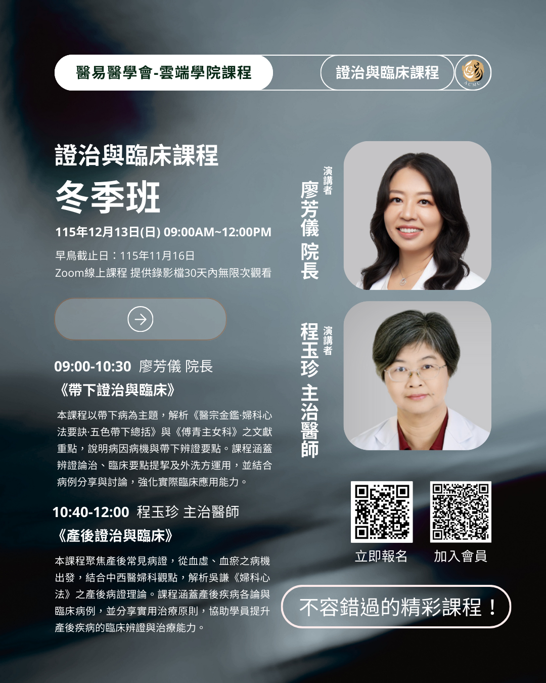 醫易醫學會115年第一期業師傳承計畫報名開放中