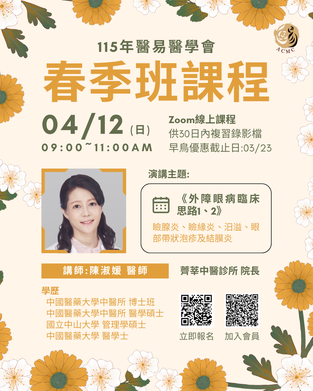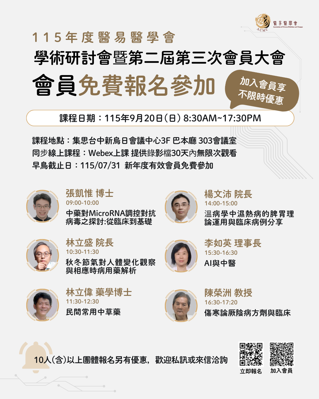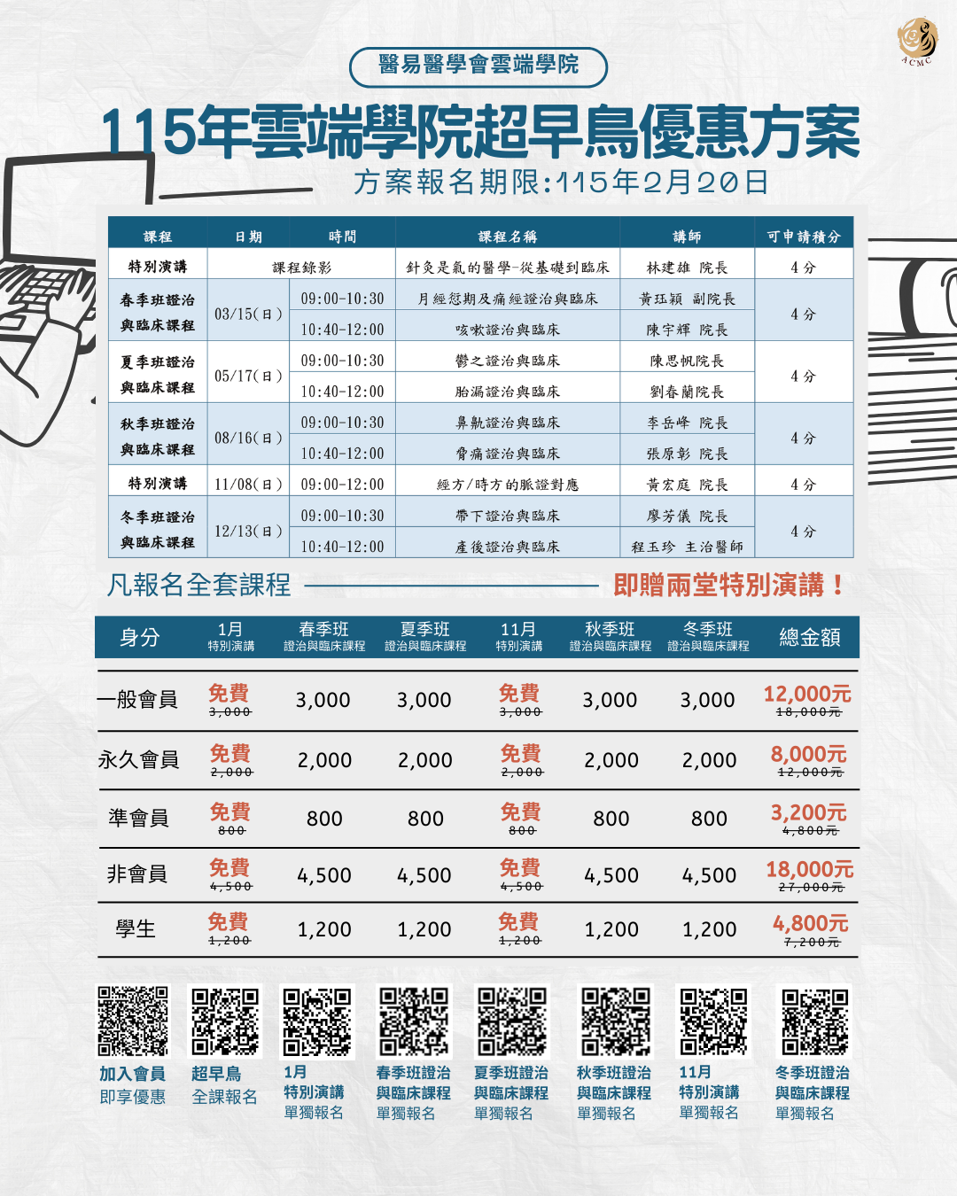 醫易醫學會115年度課程超早鳥優惠方案報名開放中