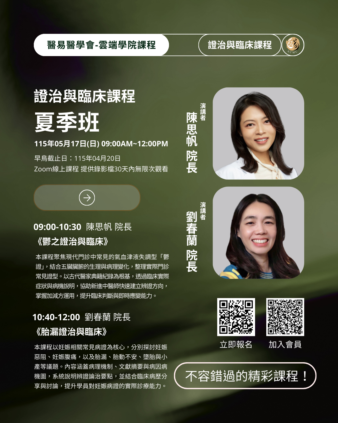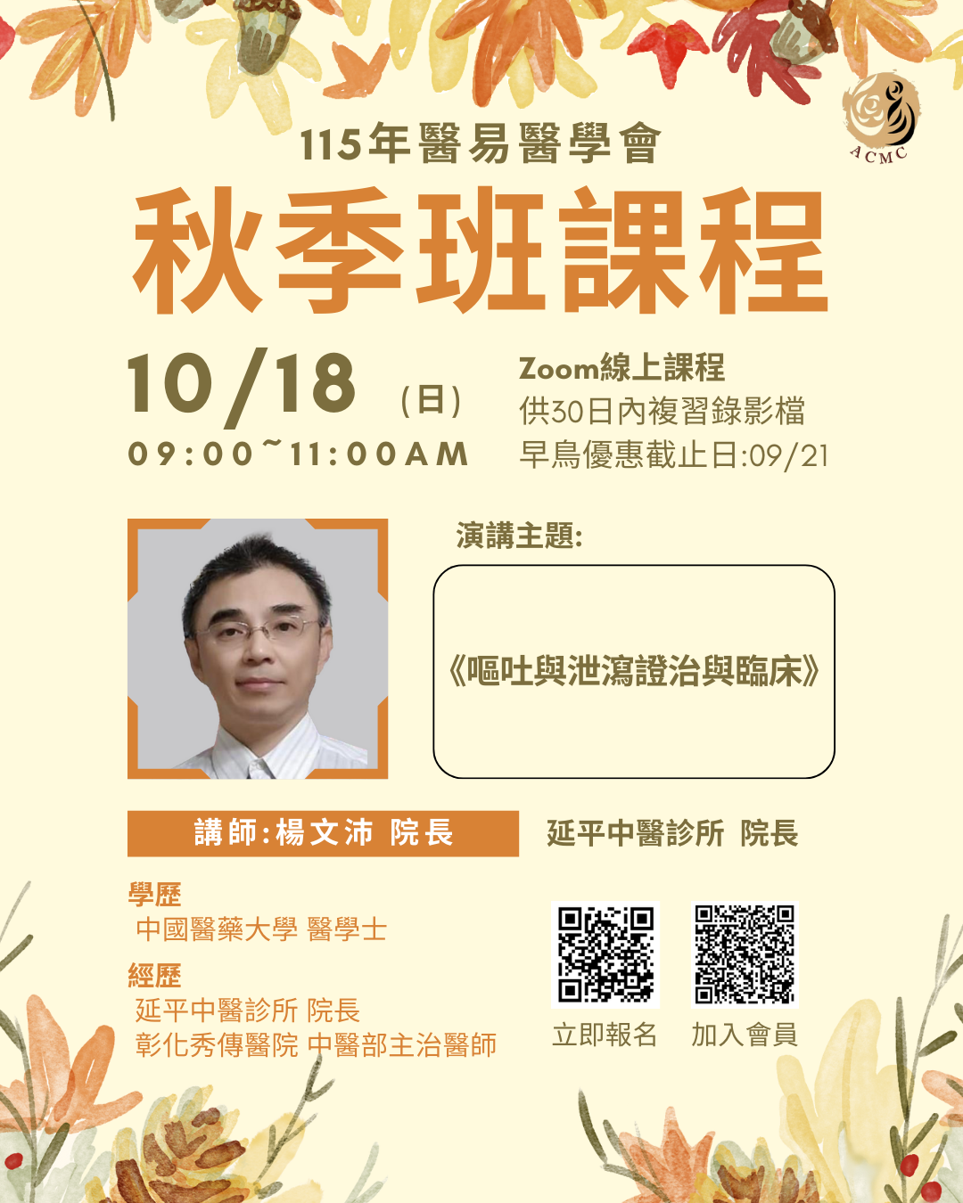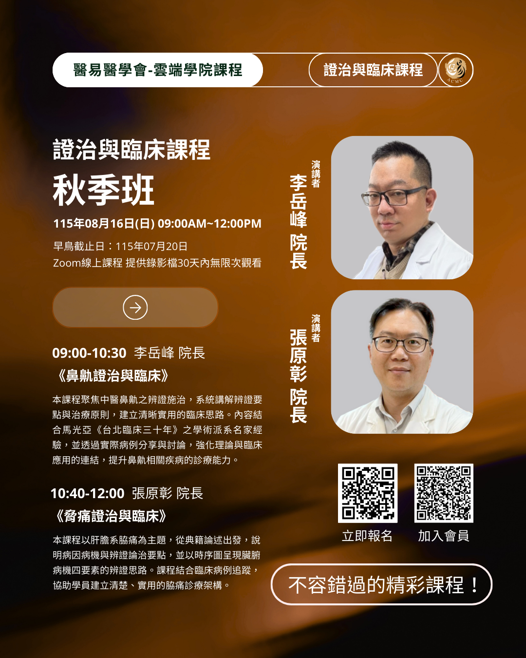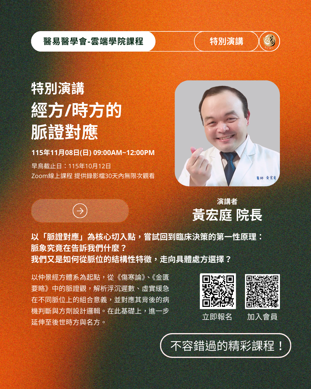醫易醫學會115年度課程超早鳥優惠方案報名開放中